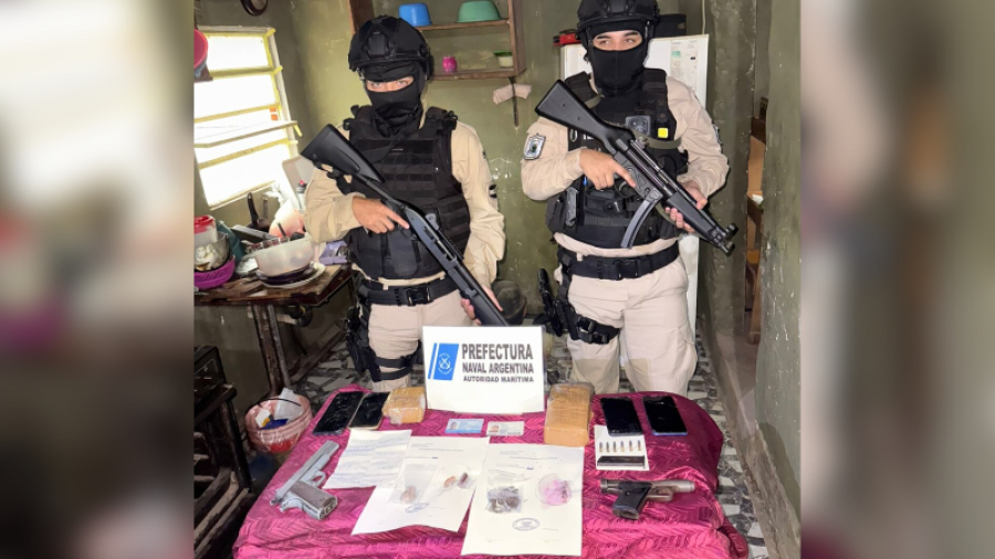 Durante el procedimiento, el personal de Prefectura aprehendió a dos personas, quienes quedaron incomunicadas y a disposición de la Justicia. En el lugar, además, se incautaron estupefacientes, tres teléfonos celulares, un arma de fuego calibre .22 con municiones, una réplica de arma, y una nota con amenazas, junto a otros elementos que serán incorporados a la investigación.