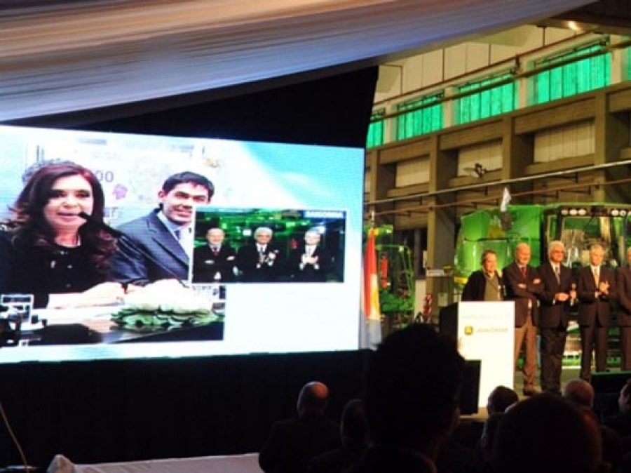 John Deere, dijo, invirtió 598 millones de pesos en su planta, lo que no sólo significa "trabajo argentino, sino balanza comercial favorable", porque significa bajar las importaciones y aumentar las exportaciones (155 millones de dólares por año).