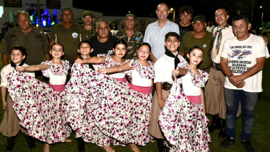 La jornada, realizada el 1° de abril por la noche, combinó homenaje, expresiones culturales y participación comunitaria, en un evento organizado de manera conjunta por el Municipio, la Secretaría de Cultura y Deporte y los Veteranos de Malvinas de la ciudad.